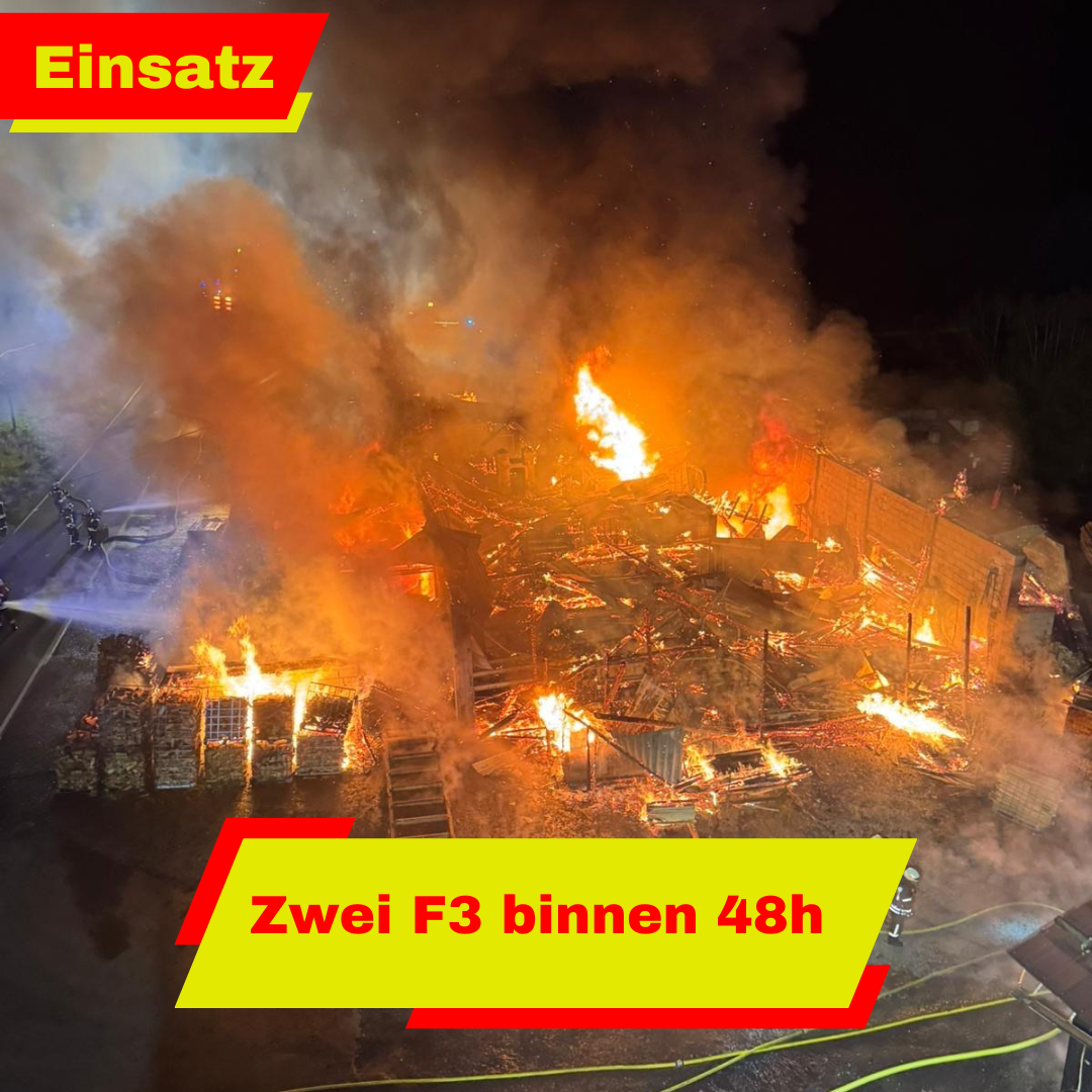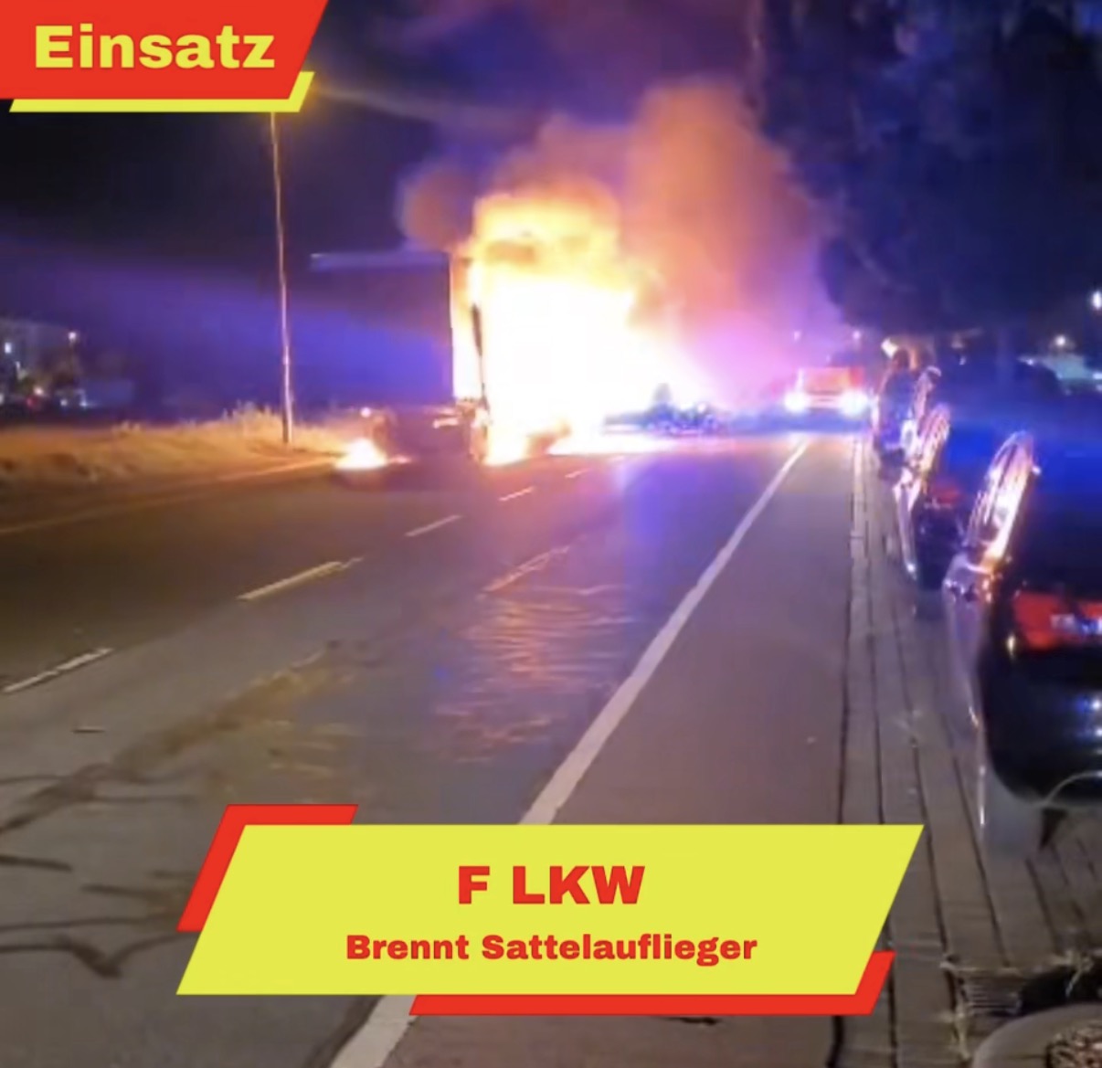 Ein brennender Sattelauflieger sorgte am Mittwochabend für einen herausfordernden Einsatz. Dank des schnellen und abgestimmten Vorgehens aller Feuerwehren konnte ein Übergreifen der Flammen verhindert werden – es war bereits der sechste Einsatz an diesem Tag für unsere Kräfte.
